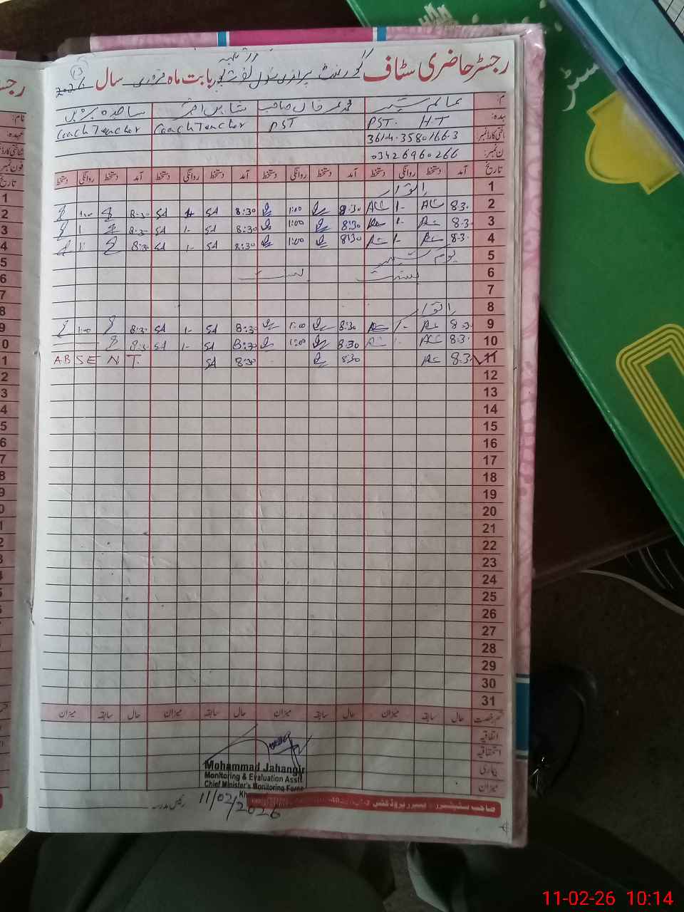 | Name: AL**** SH**** Designation: (School Headmaster's/Headmistress's) PST Phone/Cell Number: 03**** |