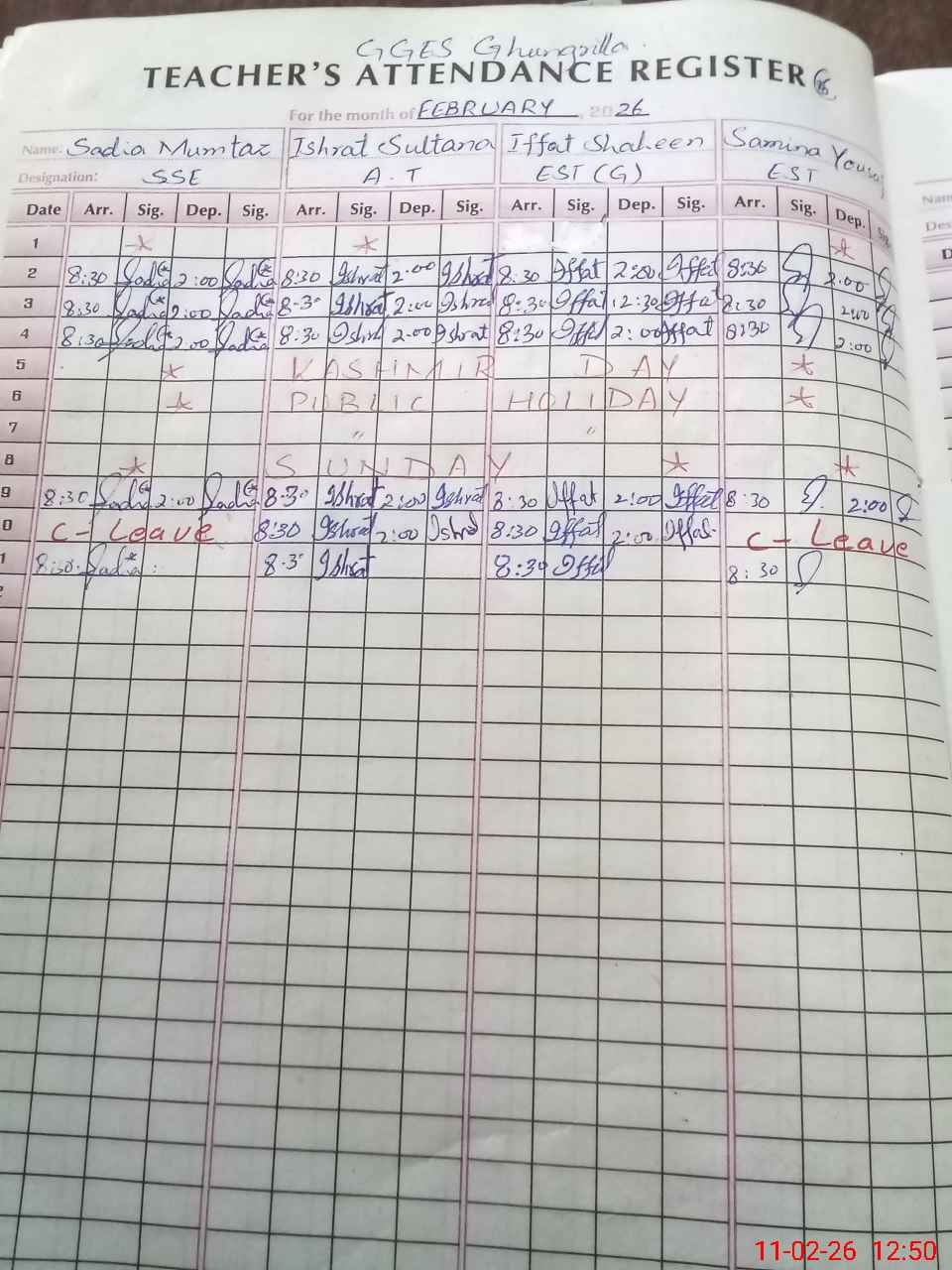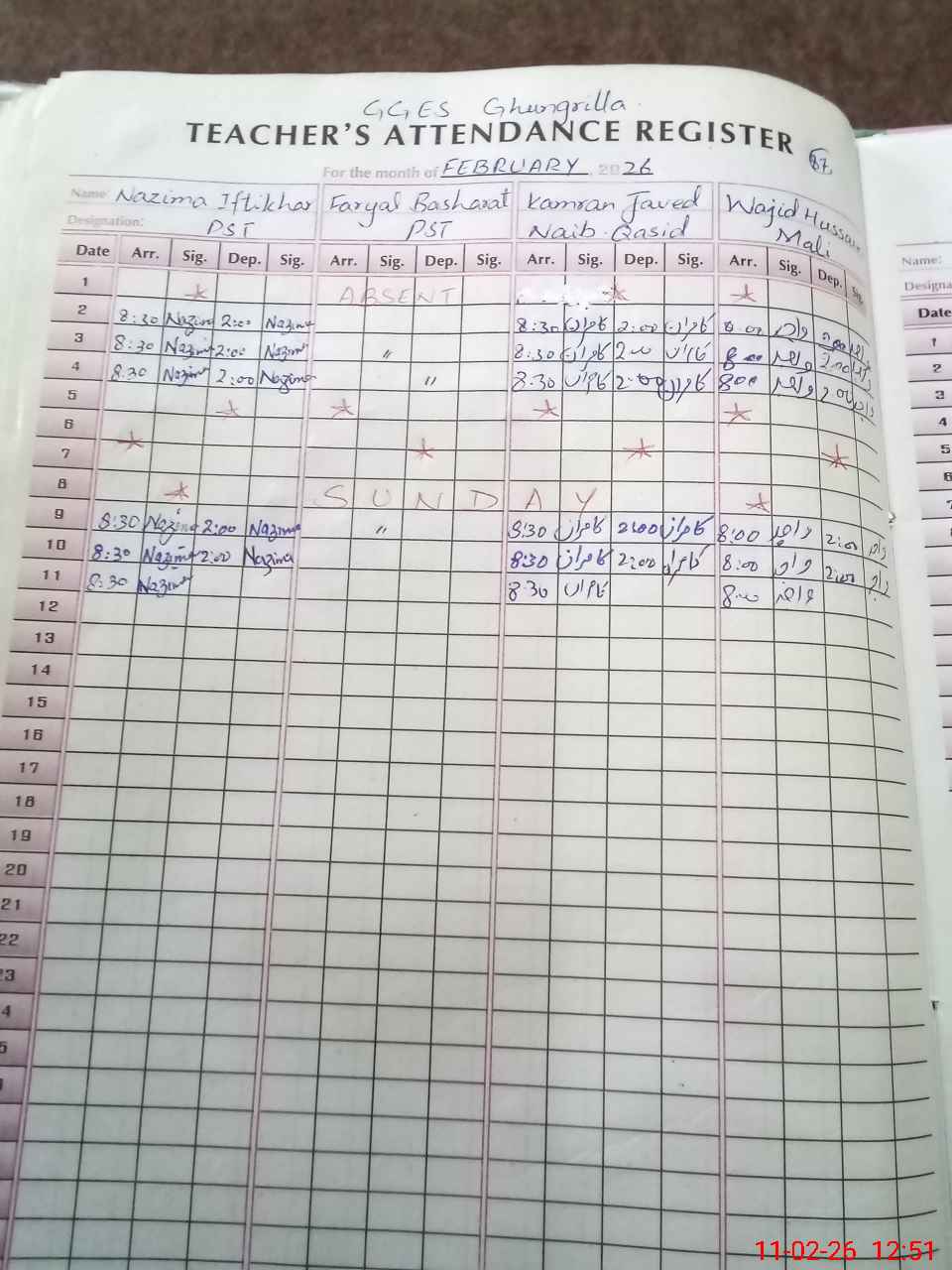 | 37**** | Fa**** Ba**** | PST Arts | Regular | 0 | 0 | 0 | 0 | 0 | 0 | 0 | 0 | 0 | Absent (Un-Authorized) |