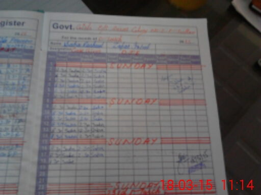 | Monitoring Date: 18-03-2015 | Start Time: 18-03-2015 10:32 AM | End Time: 18-03-2015 11:17 AM | Name of MEA: SH**** AL**** | |