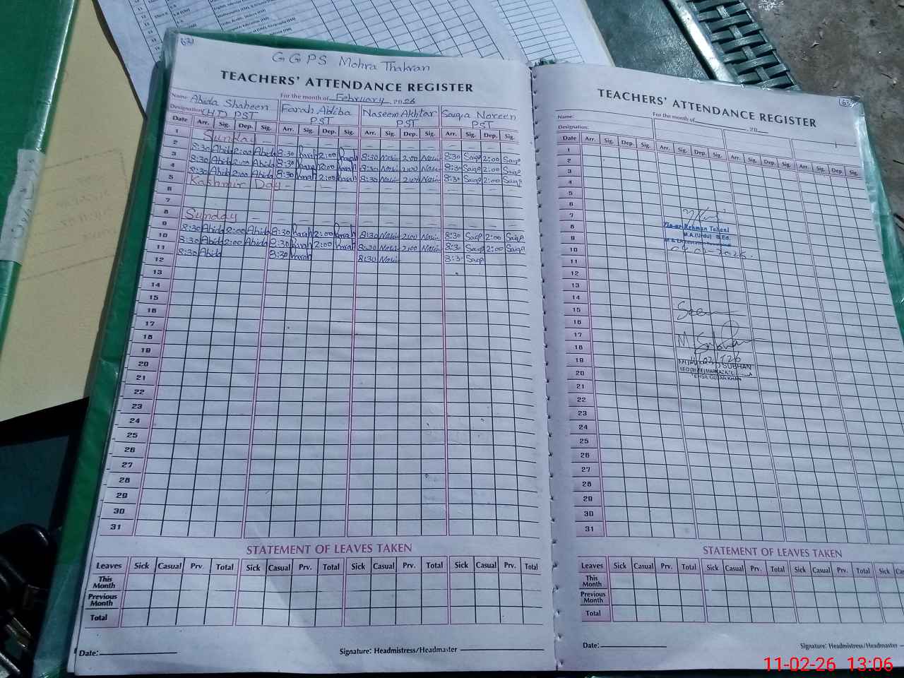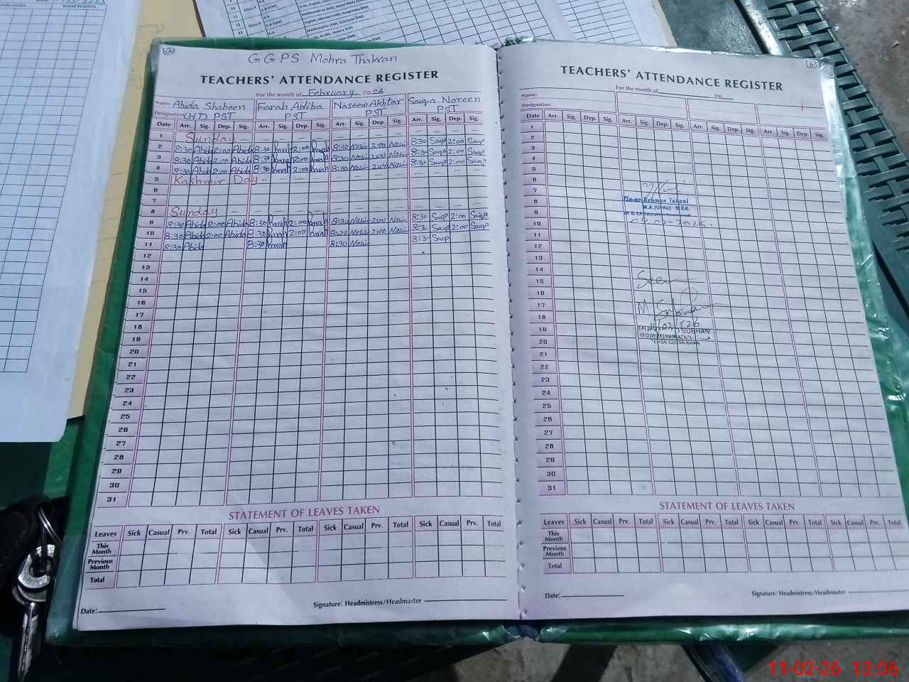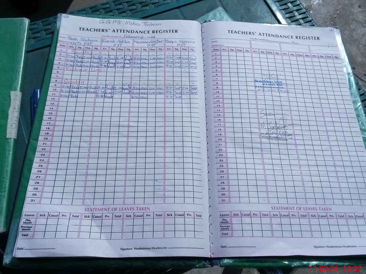 | Name: AB**** SH**** Designation: (School Headmaster's/Headmistress's) PST Phone/Cell Number: 03**** |