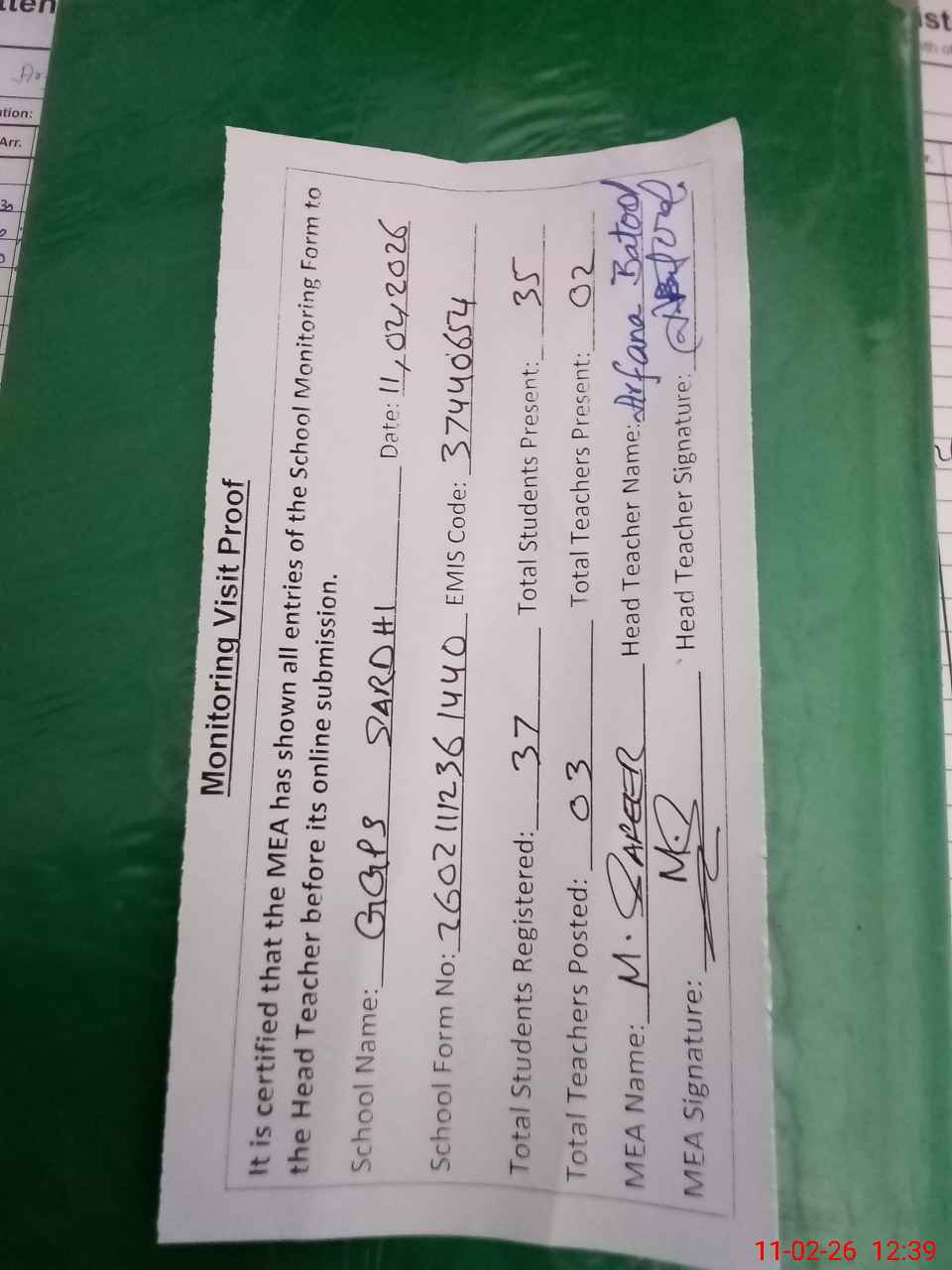 | EMIS Code: 37440654 | Name of School: GGPS SARDHI | |||