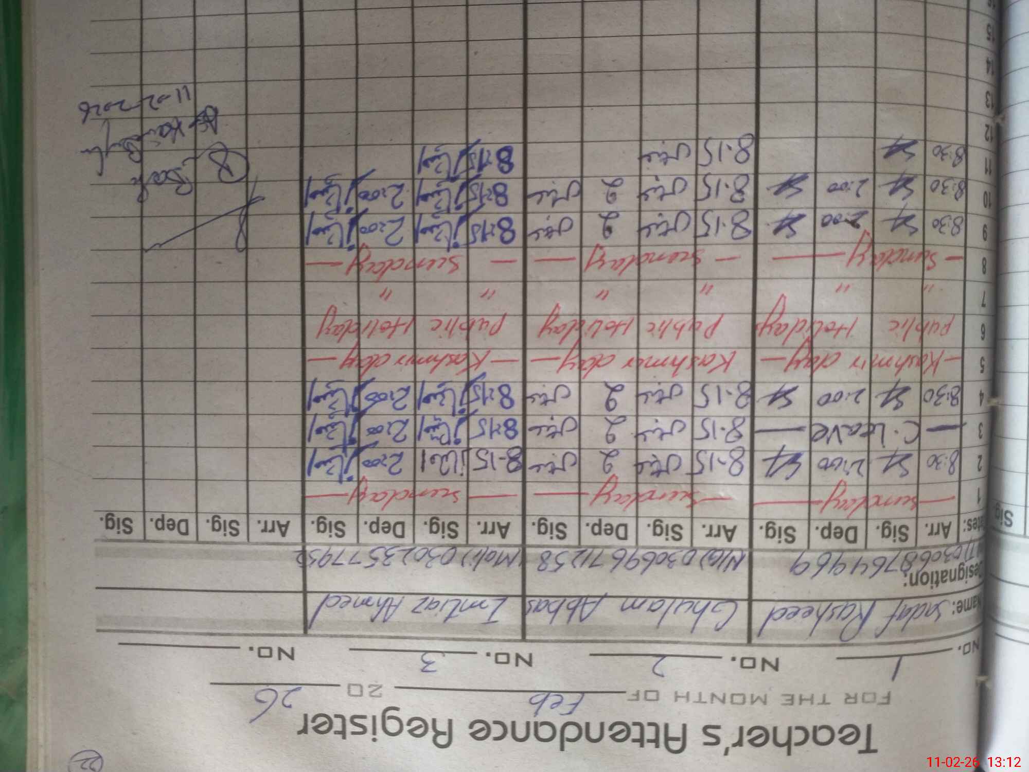 | Name: SA**** RA**** Designation: (School Headmaster's/Headmistress's) PST Phone/Cell Number: 03**** |