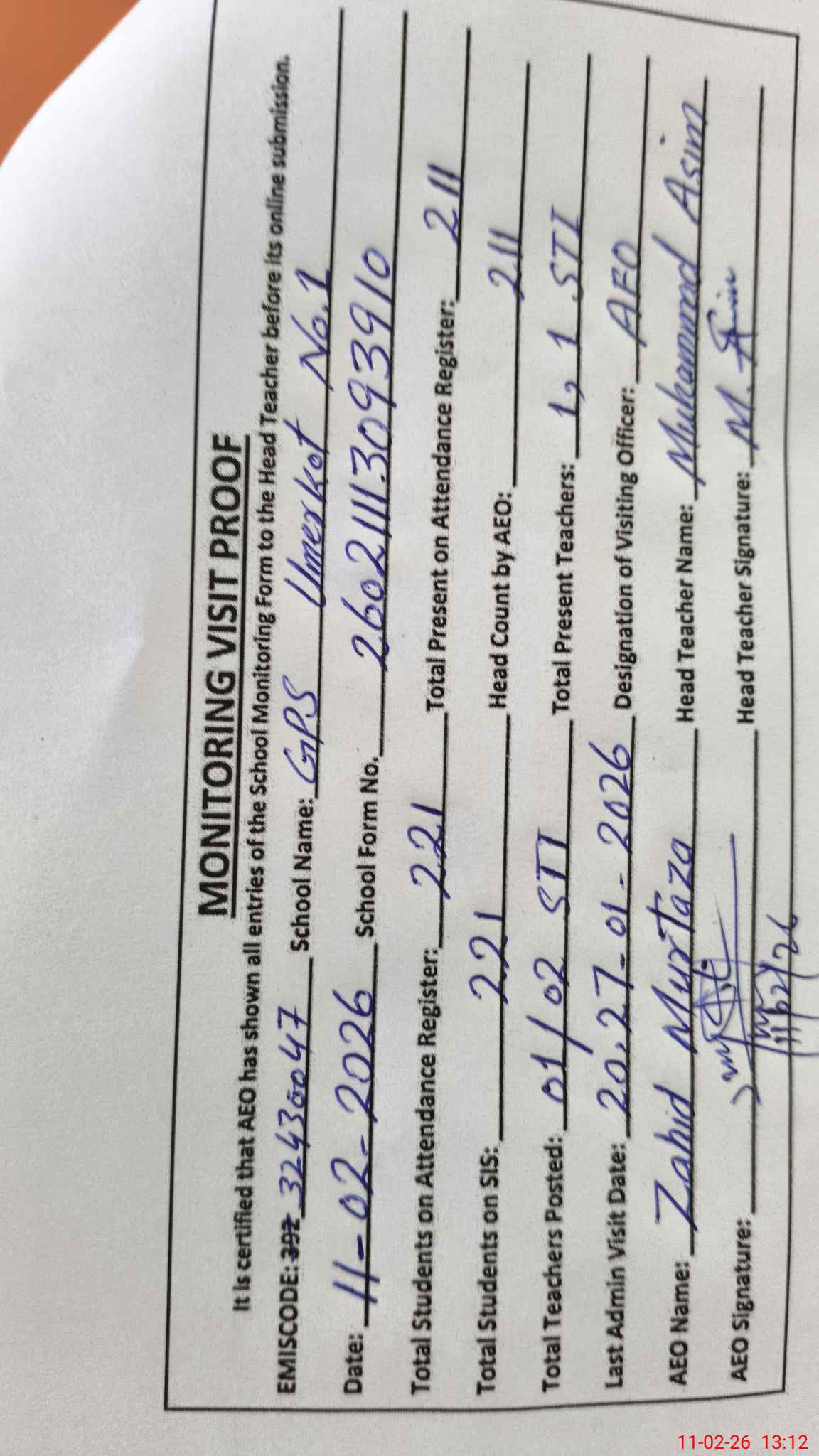| EMIS Code: 32430047 | Name of School: GPS UMER KOT NO. 1 | |||
