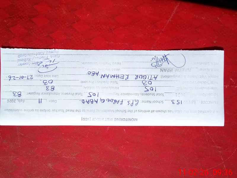 | Attendance Register | Head Teacher | MEA with School | Visit Proof |