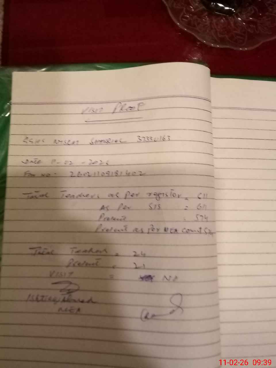 | Attendance Register | Head Teacher | MEA with School | Visit Proof |