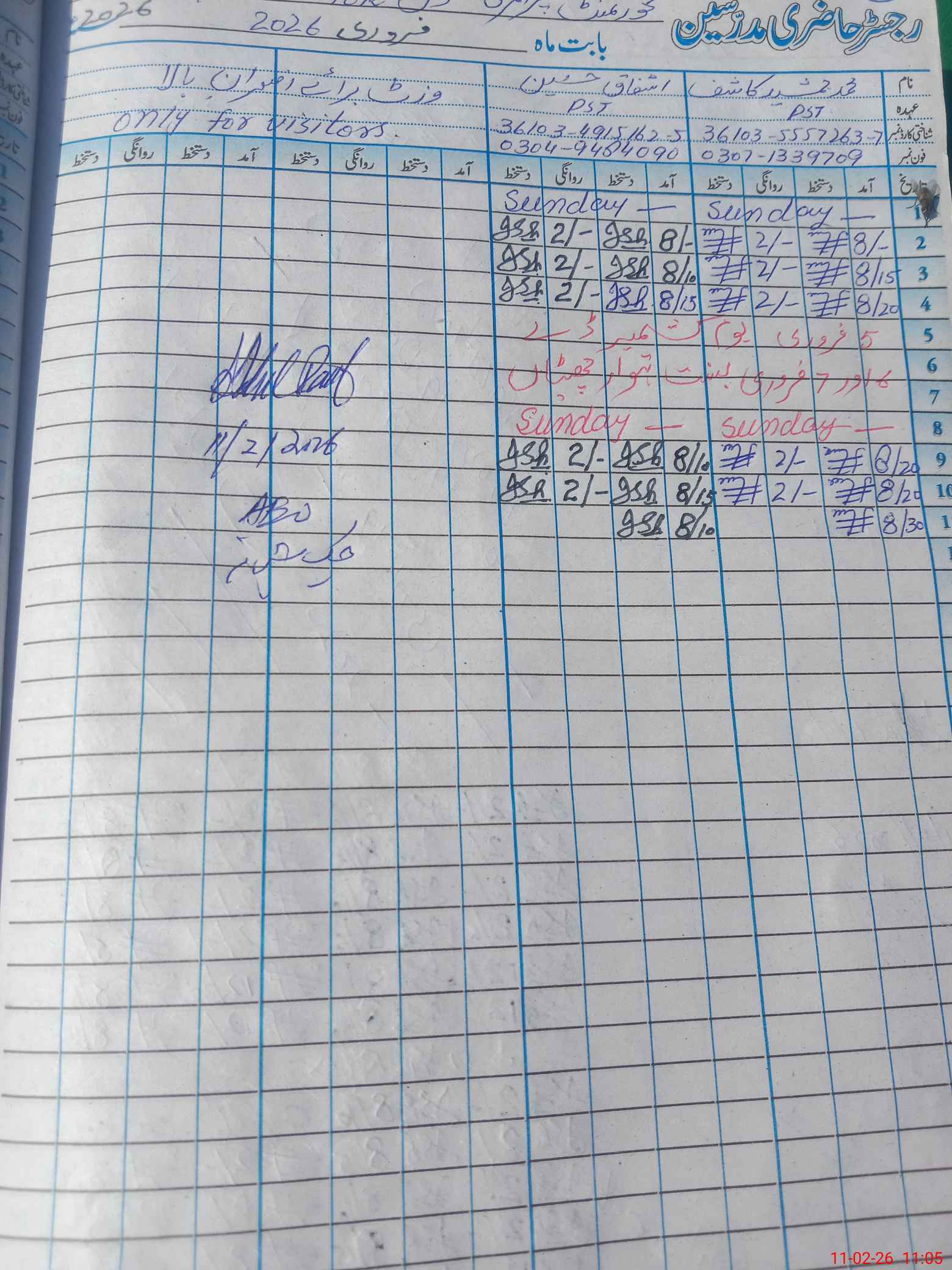 | Monitoring Date: 11-02-2026 | Start Time: 11-02-2026 10:50 AM | End Time: 11-02-2026 11:05 AM | Name of MEA: Ab**** Ra**** | |