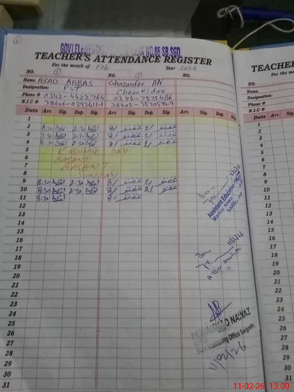 | Name: Na**** Iq**** Designation: (School Headmaster's/Headmistress's) SST Phone/Cell Number: 03**** |