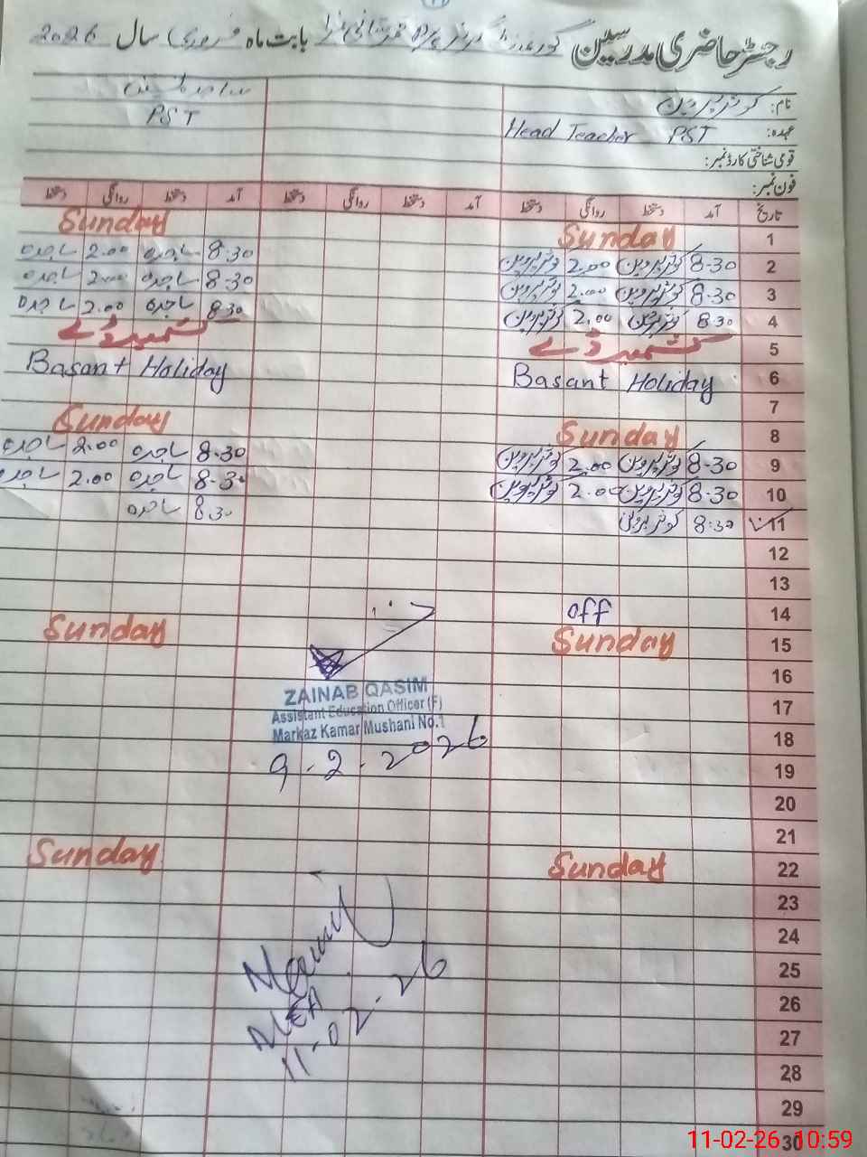 | CNIC | Full Name | Designation | R/C | Absence During Last Calender Month |