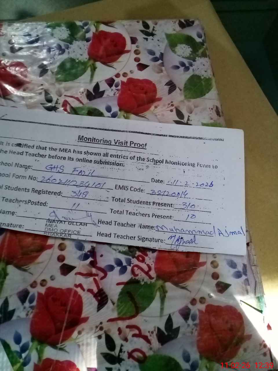 | Certified that this School was Inspected by the Undersigned MEA/DMO Today and the Information Stated Above is as Per Record. | |||||