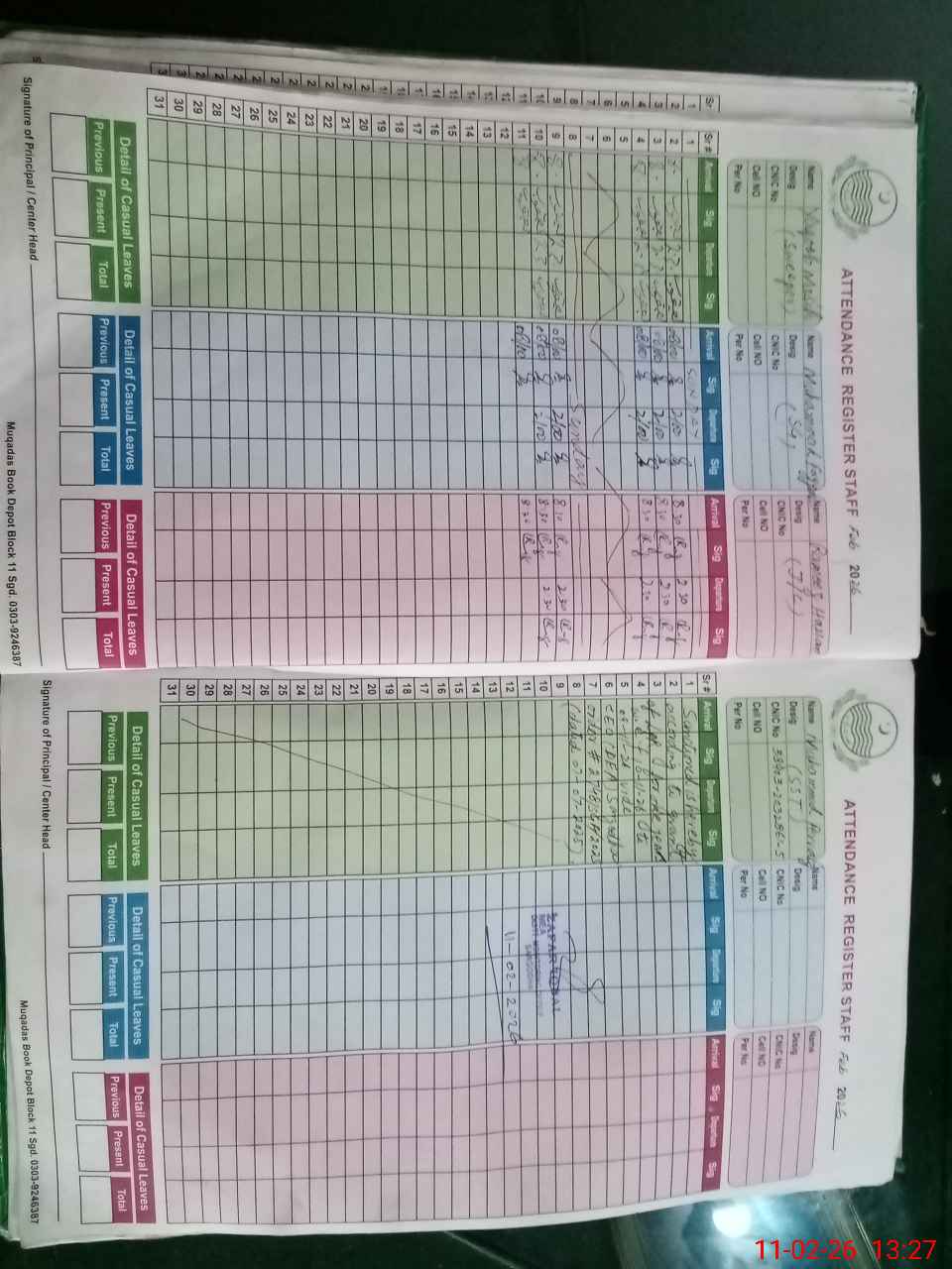 | CNIC | Full Name | Designation | R/C | Absence During Last Calender Month |
