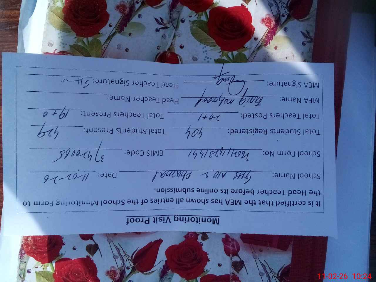 | Certified that this School was Inspected by the Undersigned MEA/DMO Today and the Information Stated Above is as Per Record. | |||||