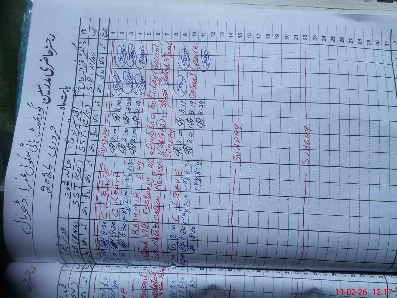 | CNIC | Full Name | Designation | R/C | Absence During Last Calender Month |