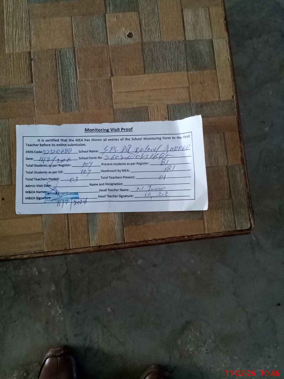 | EMIS Code: 32320688 | Name of School: GPS PIR BULAND JADEED | |||
