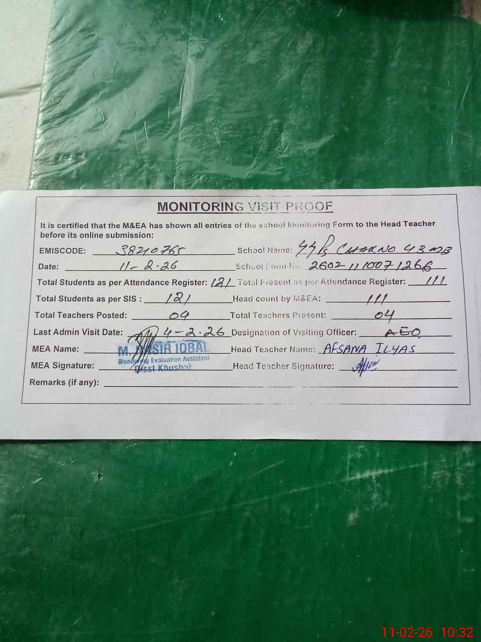 | EMIS Code: 38210765 | Name of School: GGPS CHAK NO 43 MB | |||