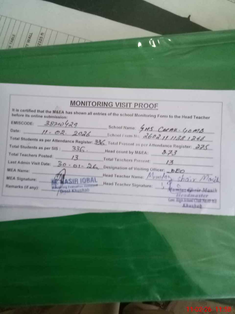 | EMIS Code: 38210429 | Name of School: GHS CHAK NO. 40 MB | |||