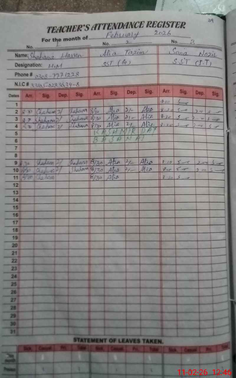 | Name: SH**** HA**** Designation: (School Headmaster's/Headmistress's) S S T Phone/Cell Number: 03**** |