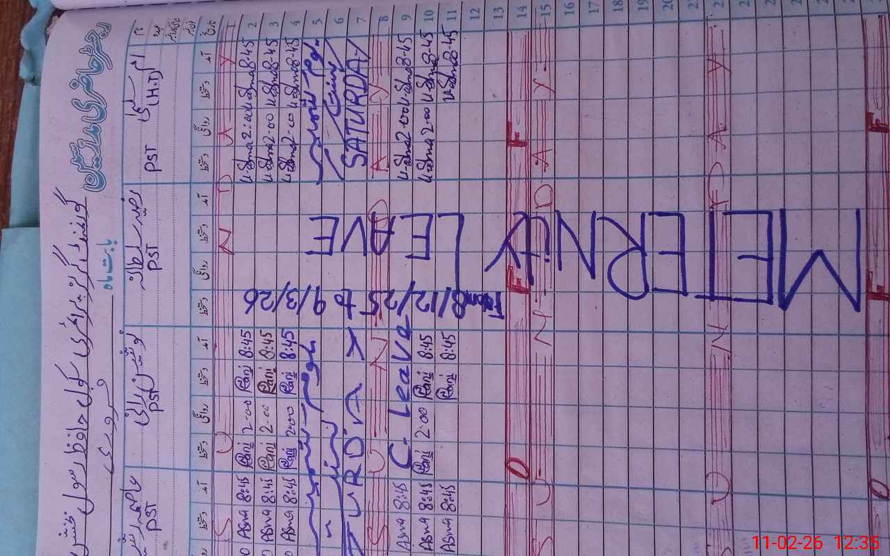 | Leave | Duty | Absent | Maternity | Medical | Ex- Pak |