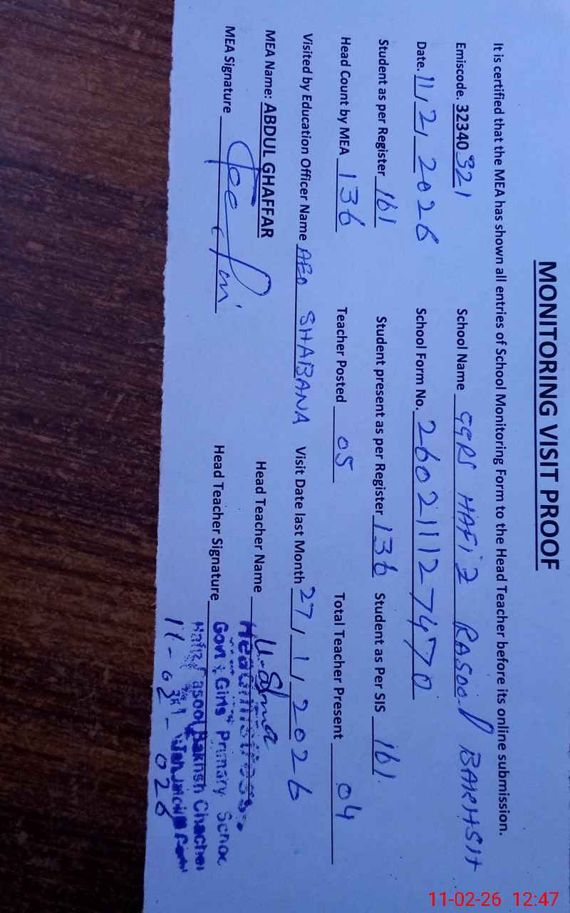 | Attendance Register | Head Teacher | MEA with School | Visit Proof |