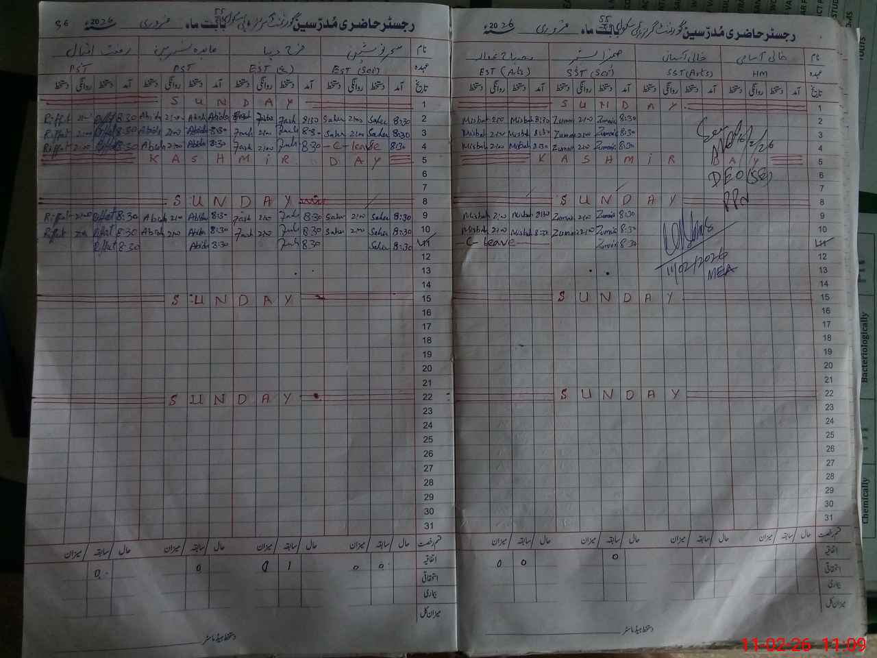 | Attendance Register | Head Teacher | MEA with School | Visit Proof |
