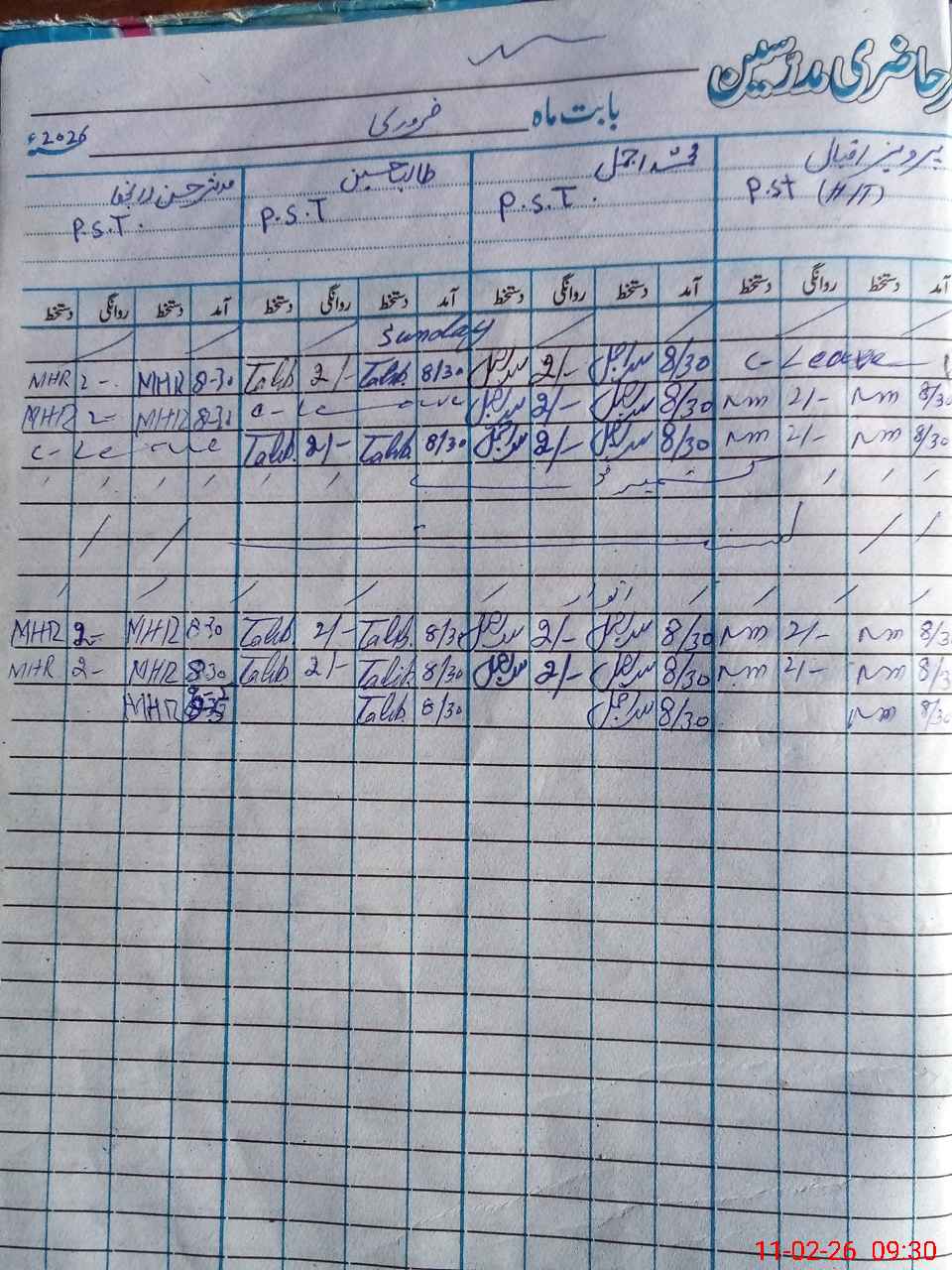 | CNIC | Full Name | Designation | R/C | Absence During Last Calender Month |