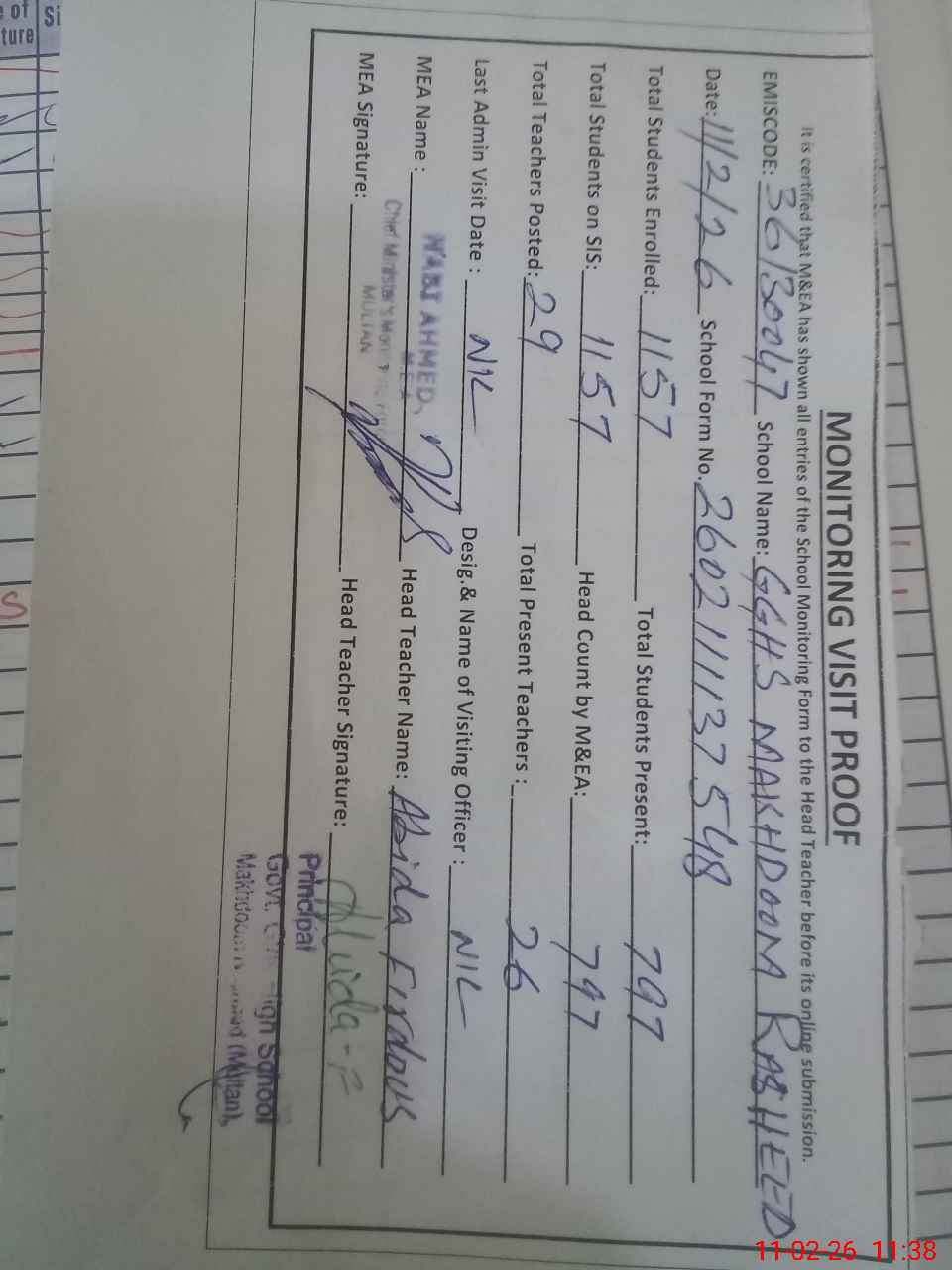 | EMIS Code: 36130047 | Name of School: GGHS MAKHDOOM RASHEED MULTAN | |||