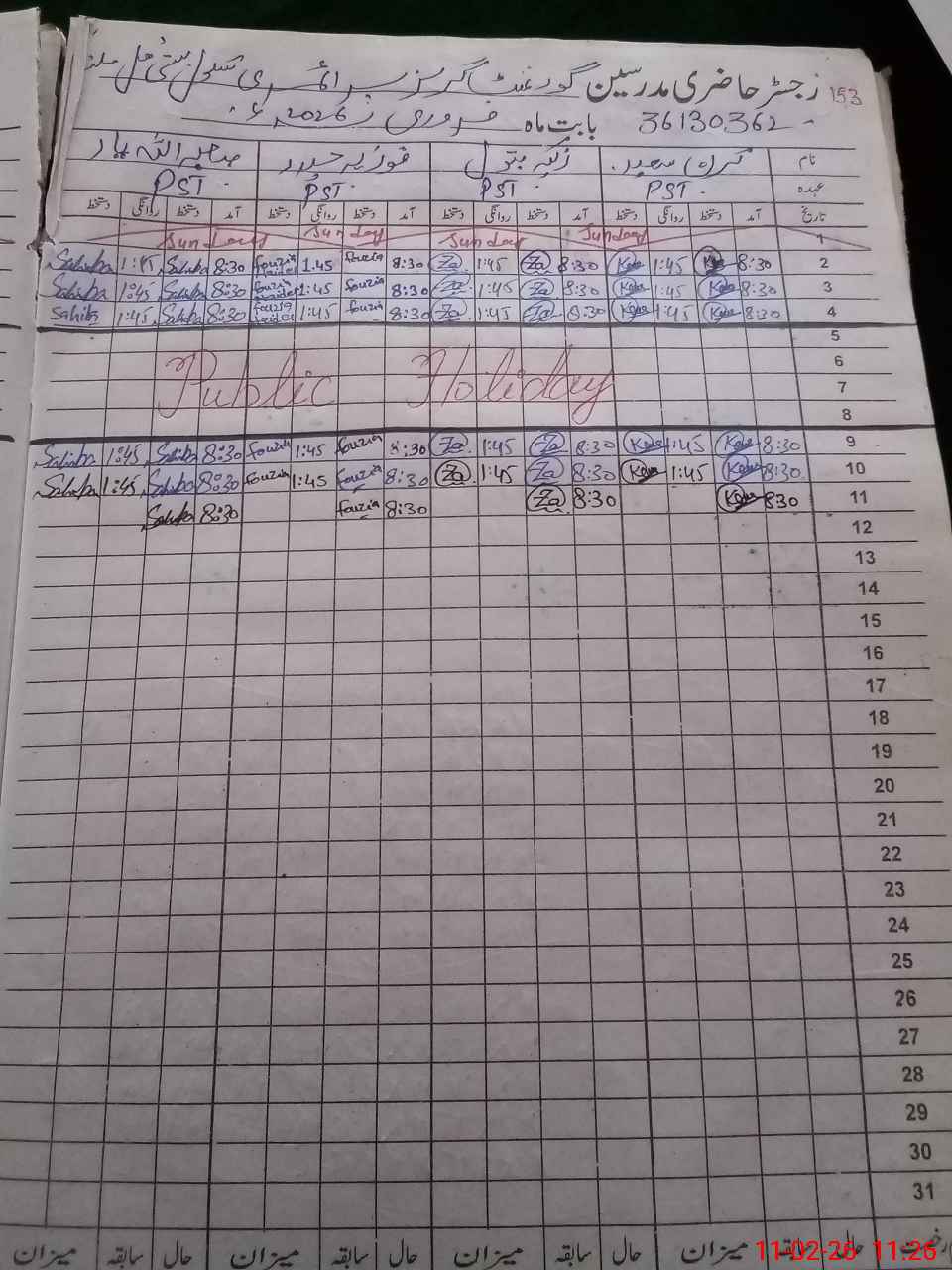 | CNIC | Full Name | Designation | R/C | Absence During Last Calender Month |