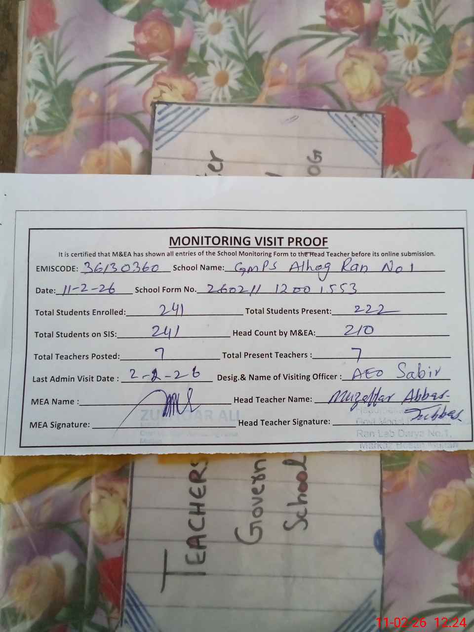 | EMIS Code: 36130360 | Name of School: GMPS ATHOG (RAN LABE DARYA NO.1) | |||
