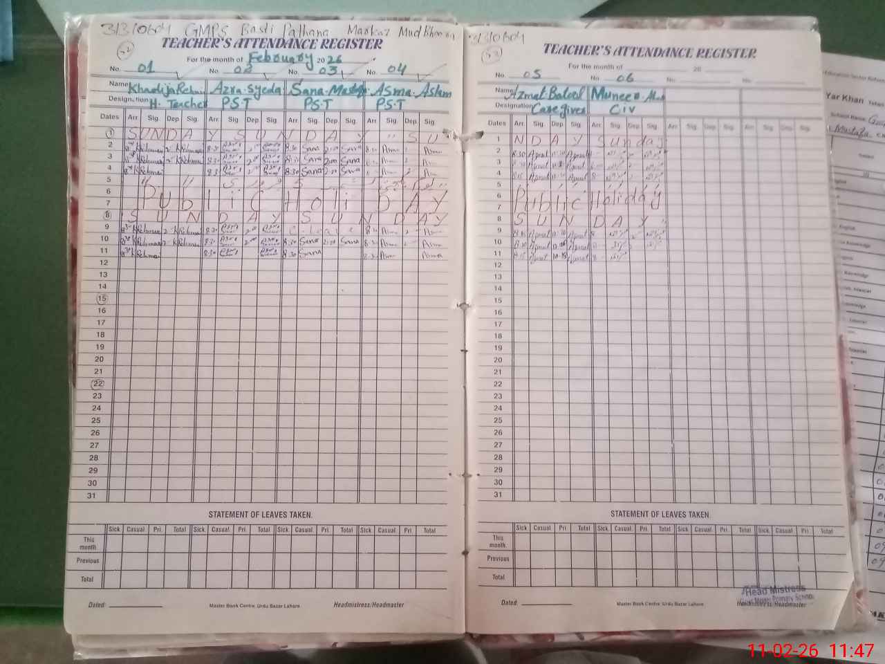 | Name: Kh**** Re**** Designation: (School Headmaster's/Headmistress's) PST Phone/Cell Number: 03**** |