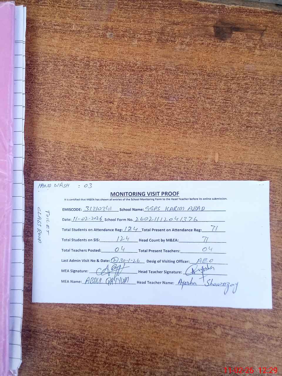 | EMIS Code: 31310341 | Name of School: GGPS KARIM ABAD | |||