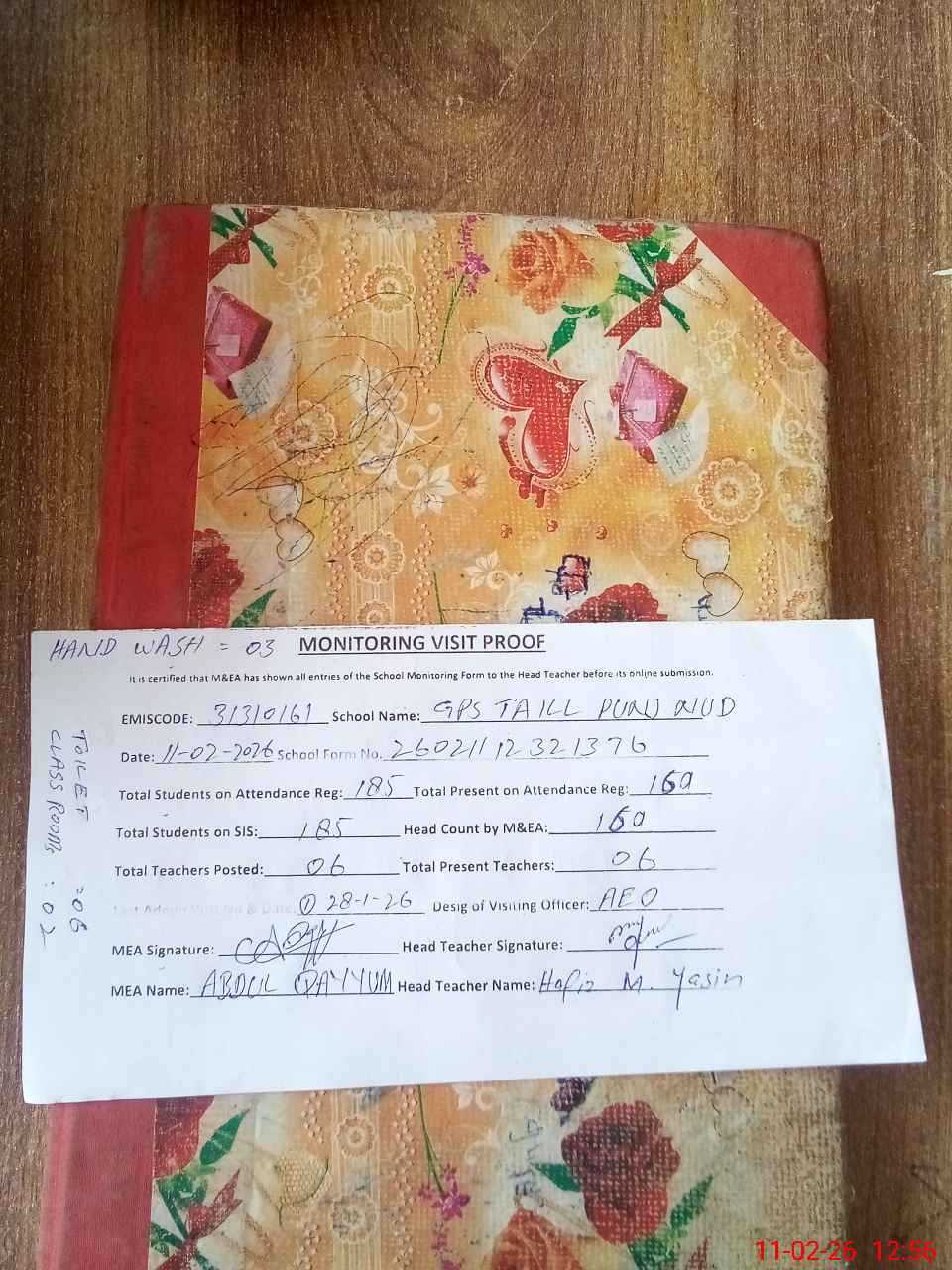| EMIS Code: 31310161 | Name of School: GPS TAILL PUNJ NUND | |||