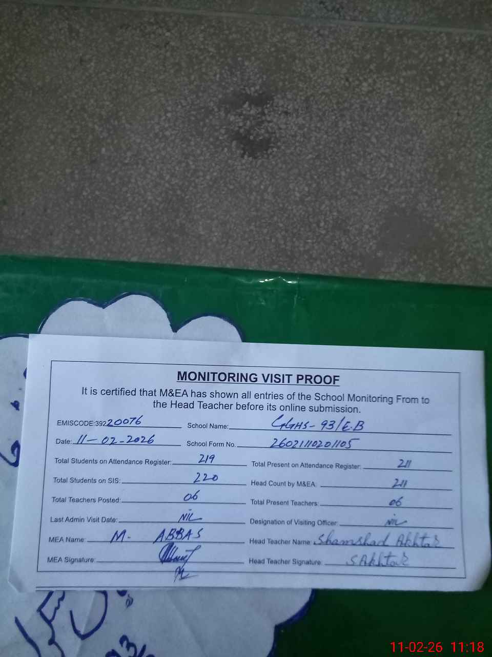 | EMIS Code: 39220076 | Name of School: GGHS 93 EB | |||