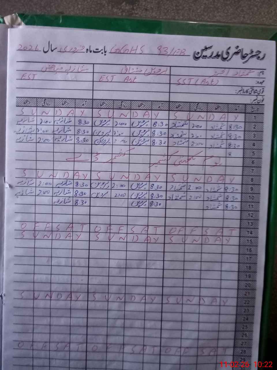 | Name: SH**** AK**** Designation: (School Headmaster's/Headmistress's) S.S.T.(GENERAL) Phone/Cell Number: 03**** |