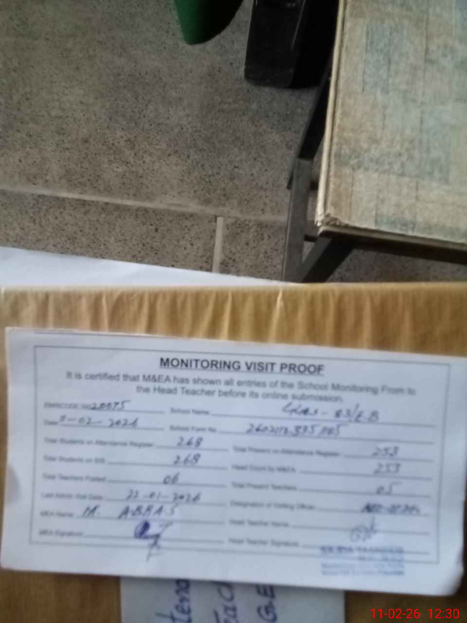 | Certified that this School was Inspected by the Undersigned MEA/DMO Today and the Information Stated Above is as Per Record. | |||||