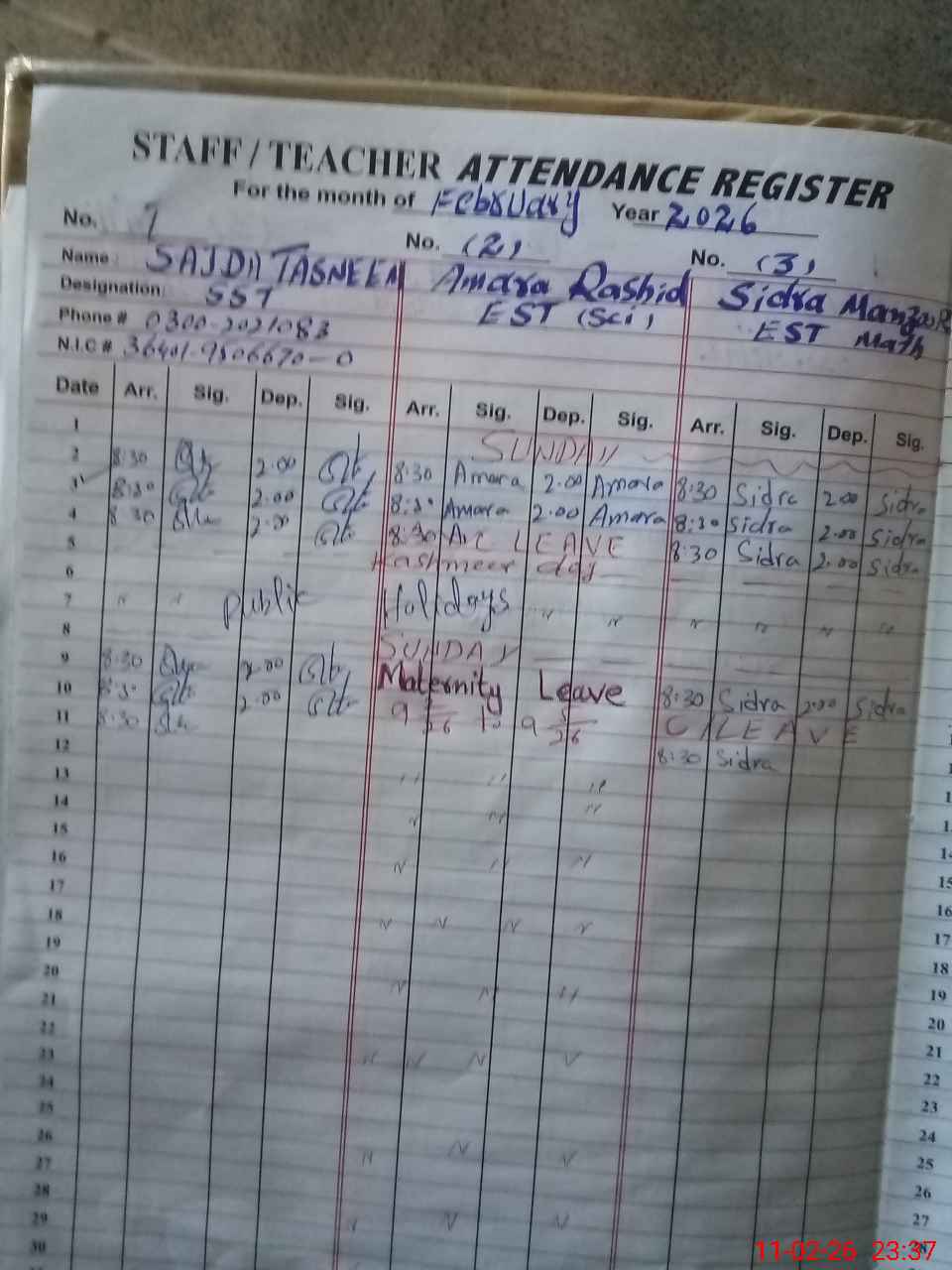 | Name: SA**** TA**** Designation: (School Headmaster's/Headmistress's) SST (GENERAL) Phone/Cell Number: 03**** |