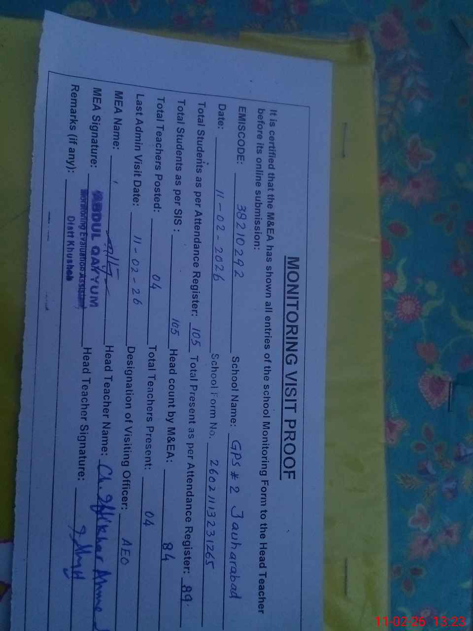 | EMIS Code: 38210292 | Name of School: GPS NO. 2 JAUHARABAD | |||