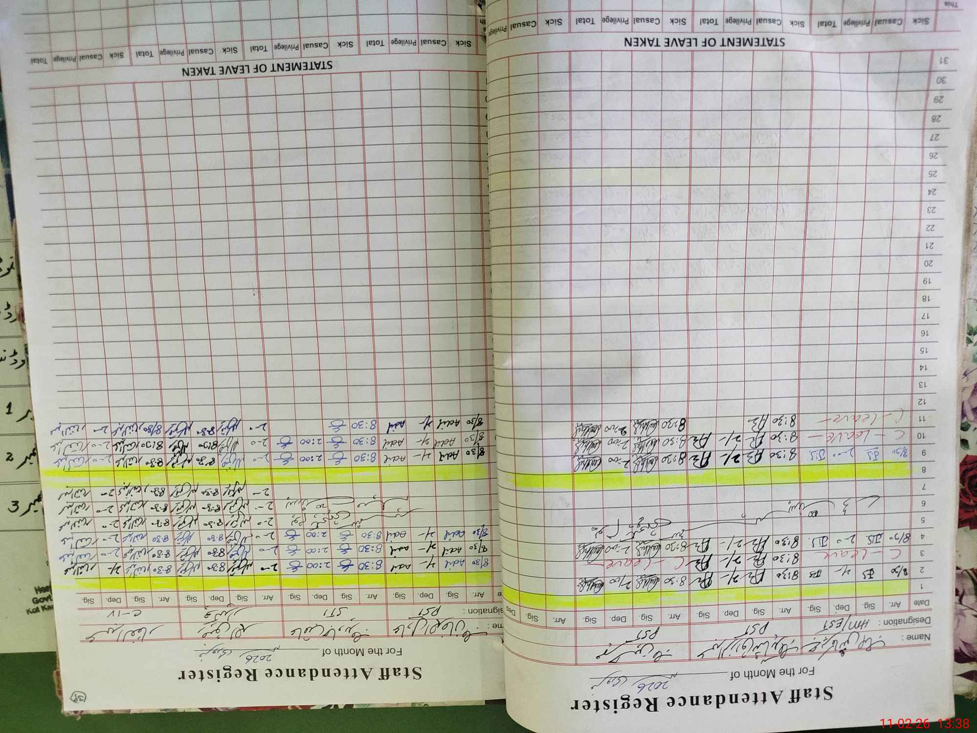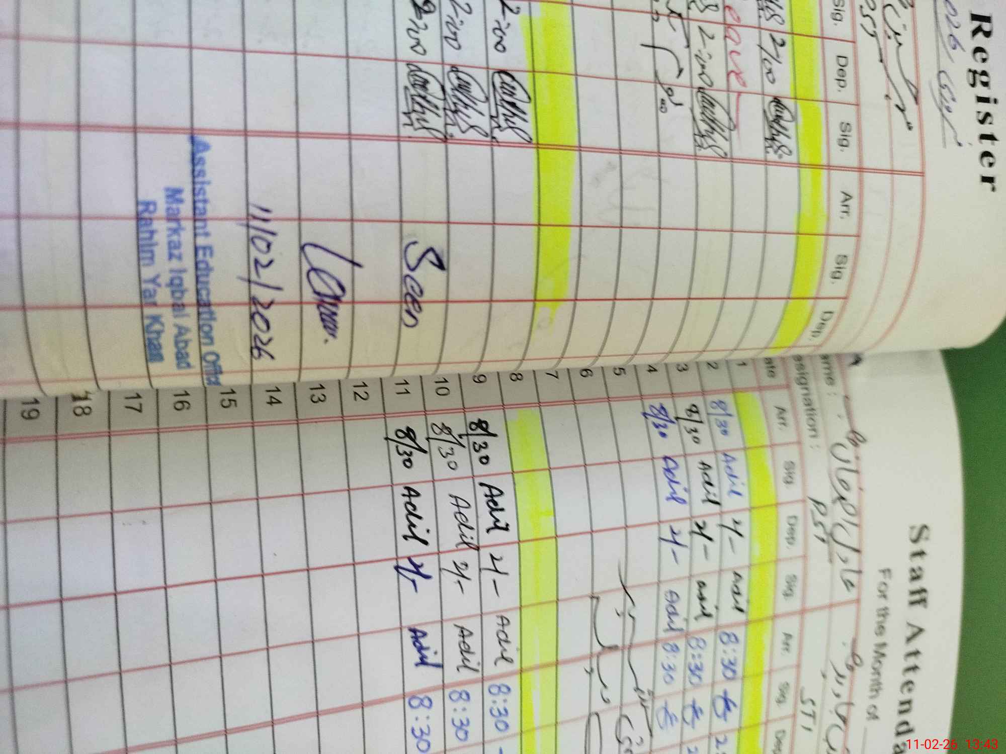 | CNIC | Full Name | Designation | R/C | Absence During Last Calender Month |