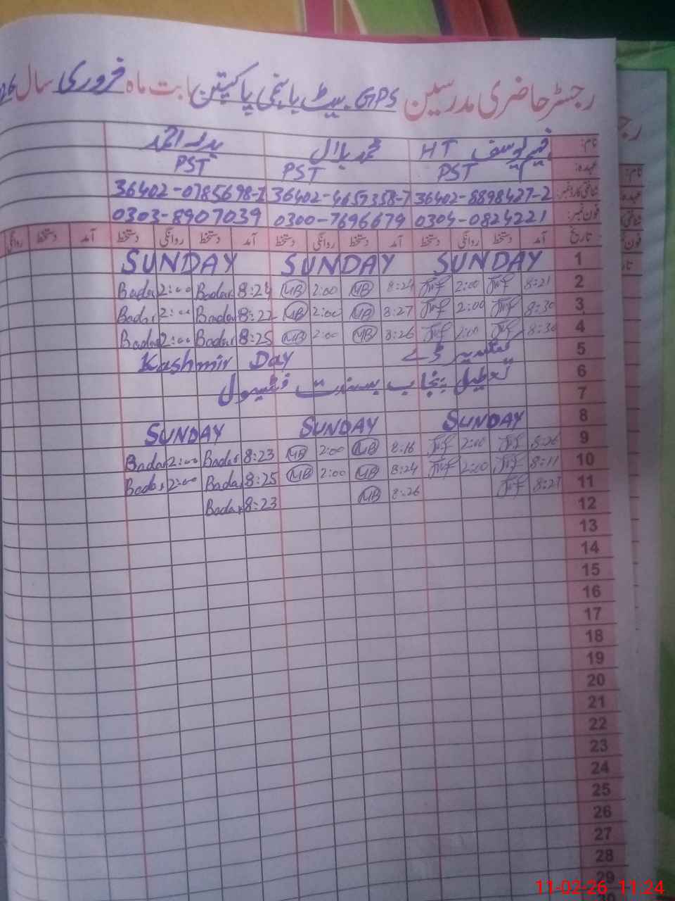 | CNIC | Full Name | Designation | R/C | Absence During Last Calender Month |