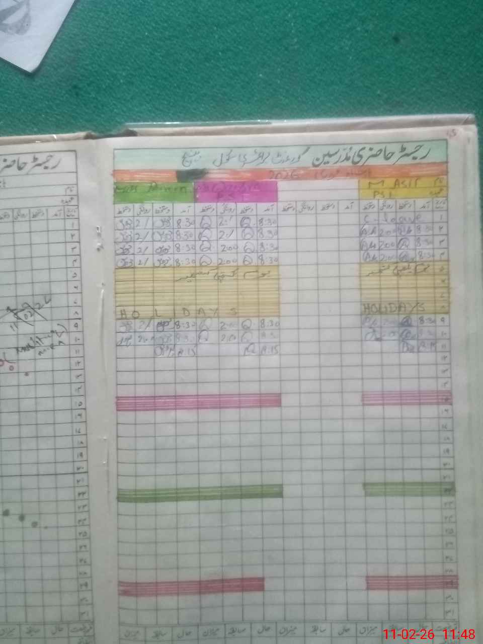 | CNIC | Full Name | Designation | R/C | Absence During Last Calender Month |