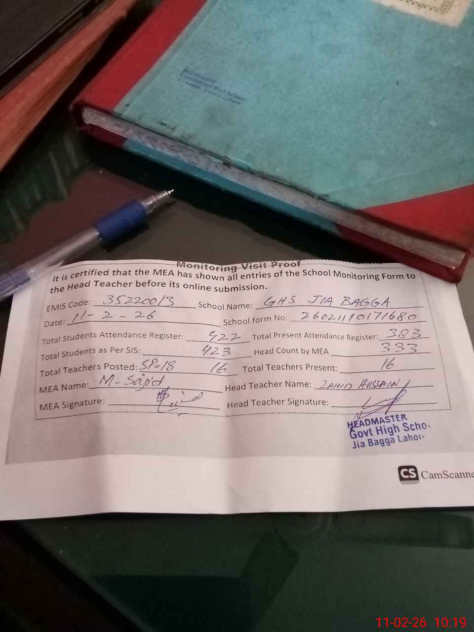 | EMIS Code: 35220013 | Name of School: GHS JIA BAGGA | |||