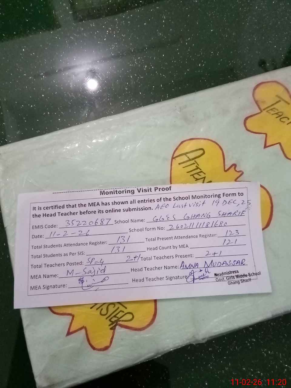 | EMIS Code: 35220687 | Name of School: GGES GHANG SHARIF | |||