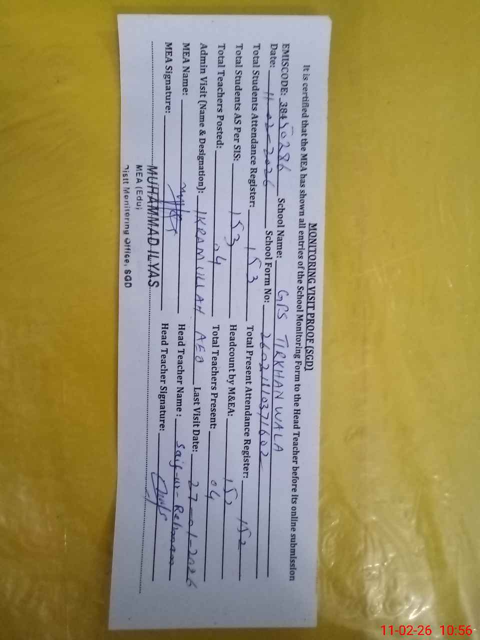 | EMIS Code: 38450286 | Name of School: GPS TIRKHAN WALA | |||