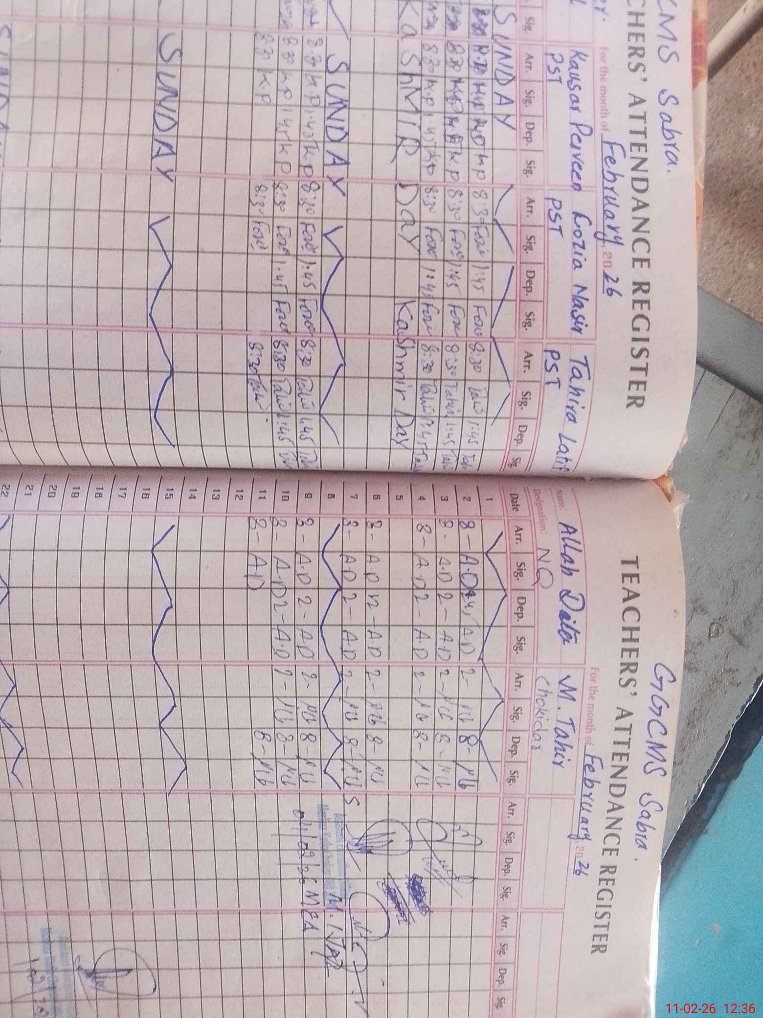 | CNIC | Full Name | Designation | R/C | Absence During Last Calender Month |