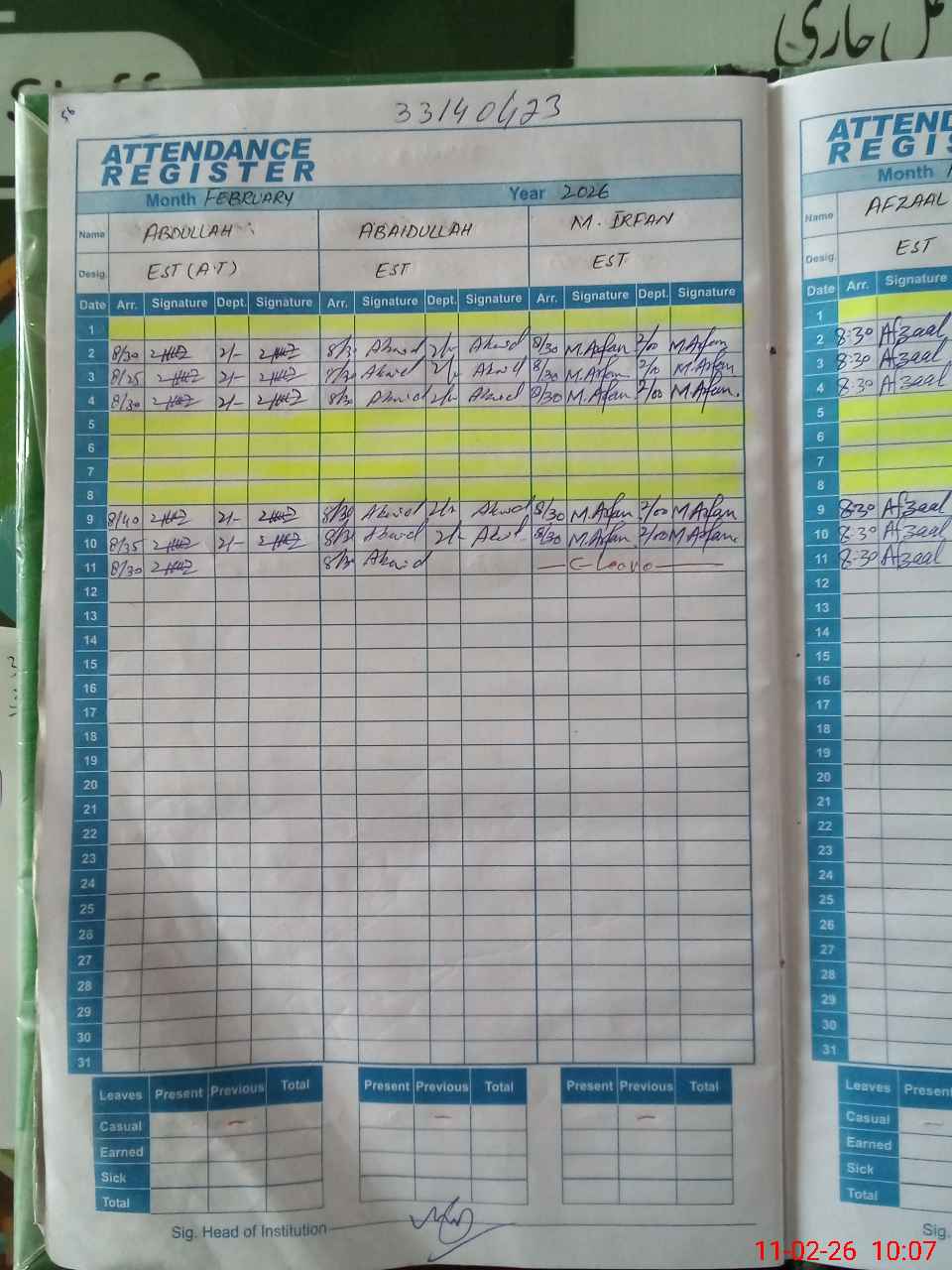 | 33**** | Mu**** Ar**** An**** | EST Science | Regular | 2 | 0 | 0 | 0 | 0 | 0 | 0 | 0 | 2 | Casual |