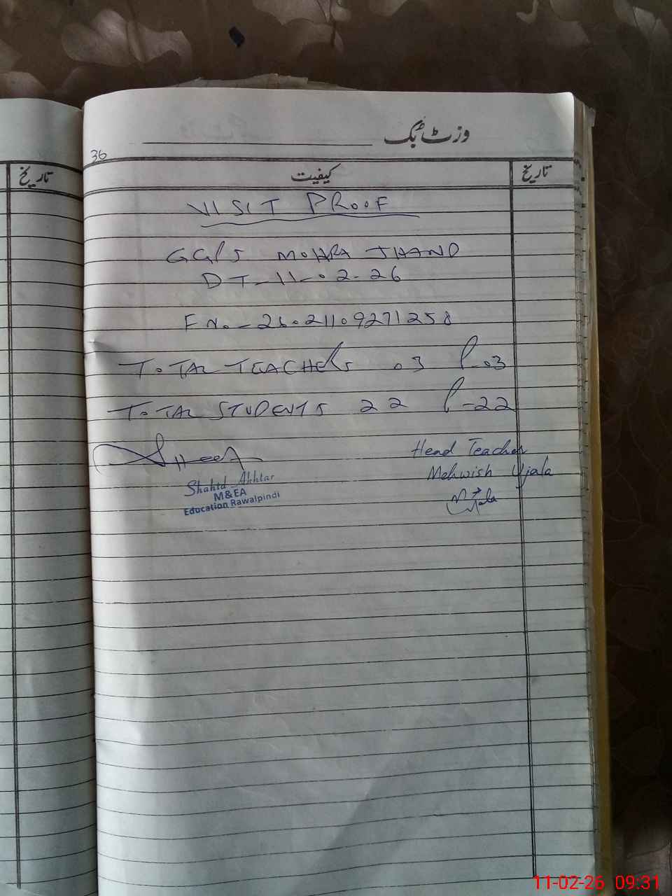 | EMIS Code: 37370409 | Name of School: GGPS MOHRA JHAND | |||