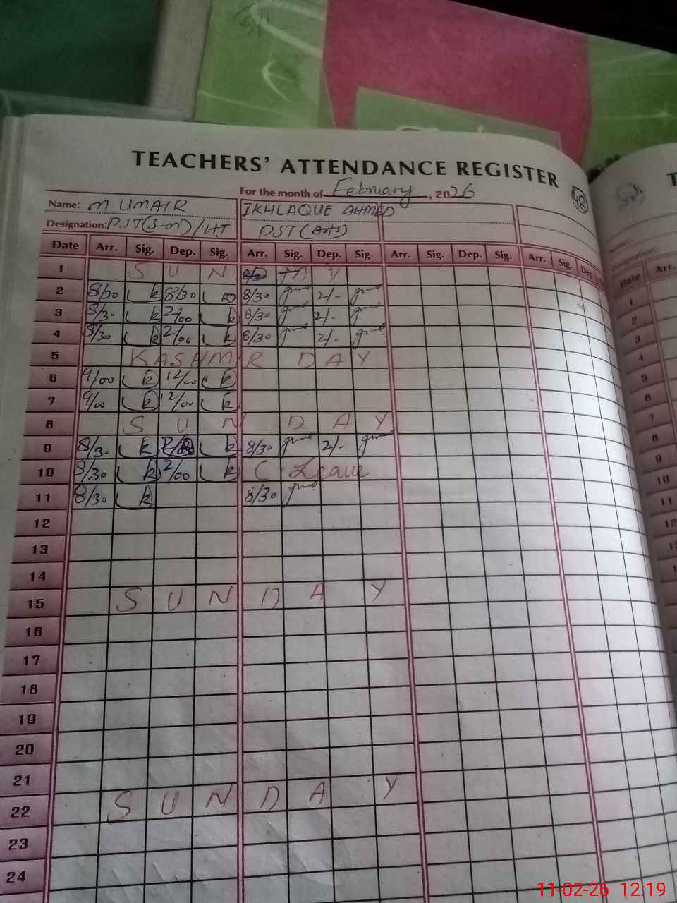 | Name: MU**** RA**** Designation: (School Headmaster's/Headmistress's) PST Phone/Cell Number: 03**** |