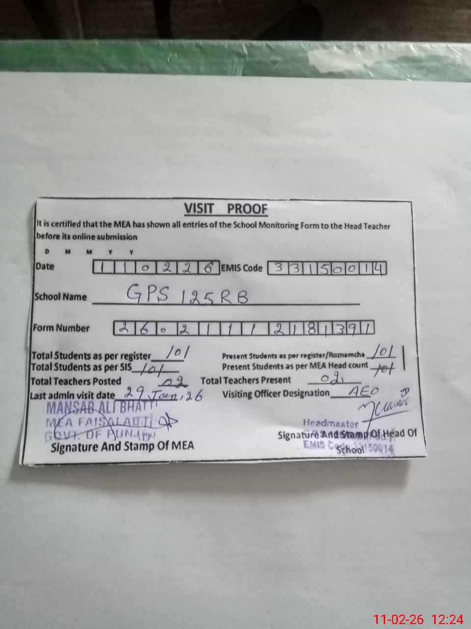 | EMIS Code: 33150014 | Name of School: GPS 125 RB | |||