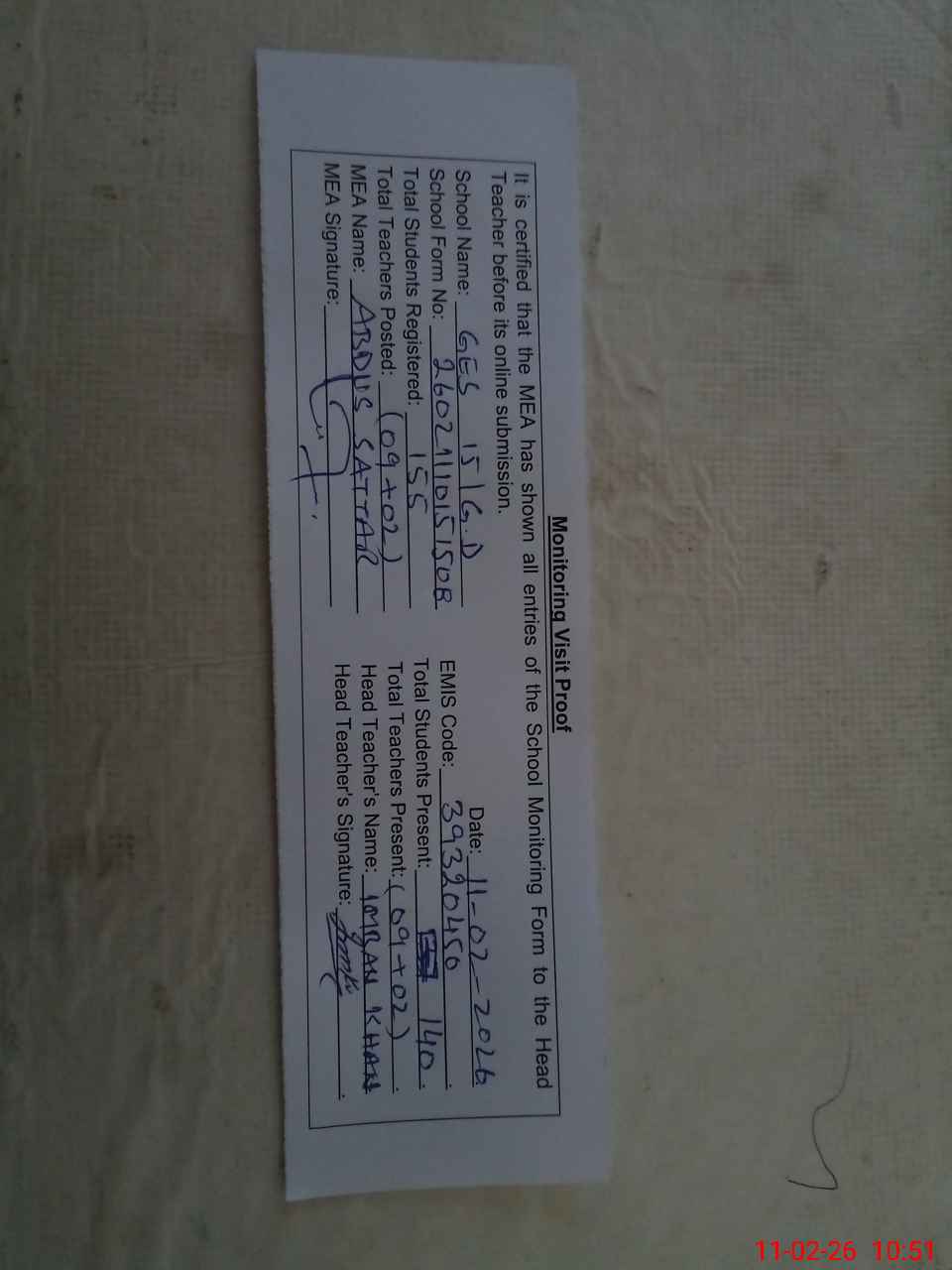 | Certified that this School was Inspected by the Undersigned MEA/DMO Today and the Information Stated Above is as Per Record. | |||||