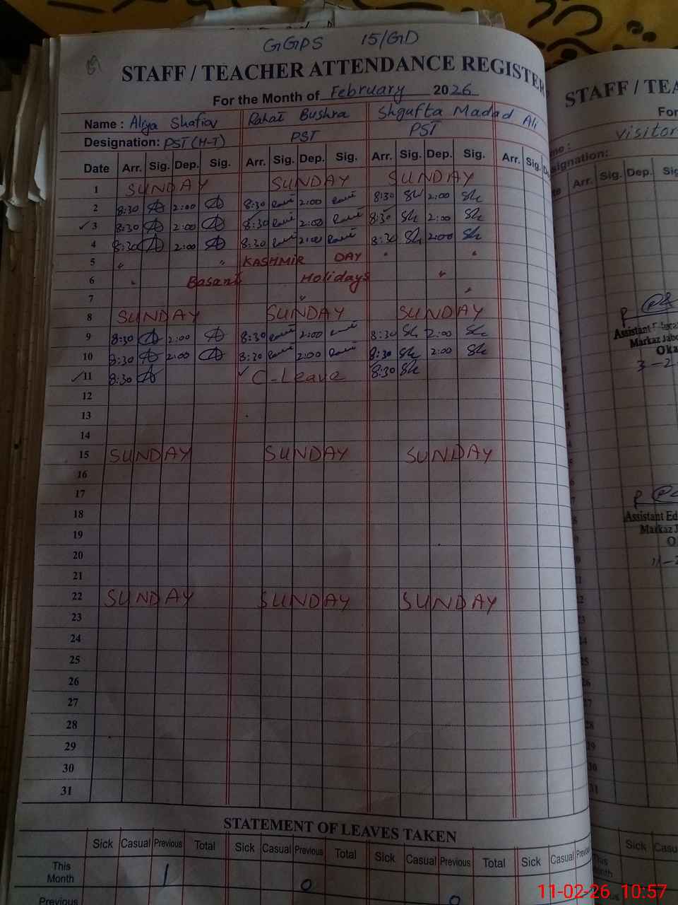 | Leave | Duty | Absent | Maternity | Medical | Ex- Pak |