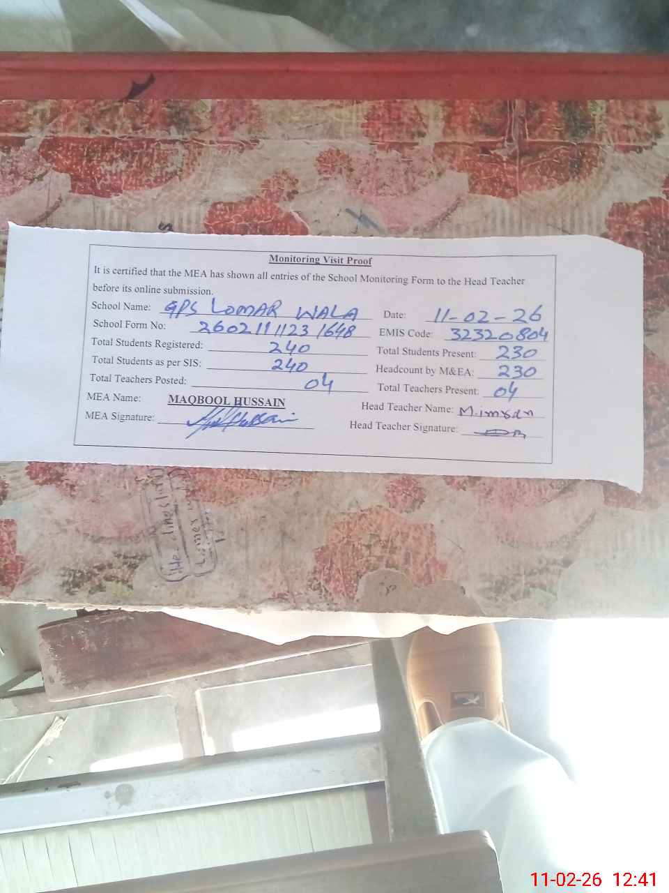 | EMIS Code: 32320804 | Name of School: GPS LOMER WALA | |||