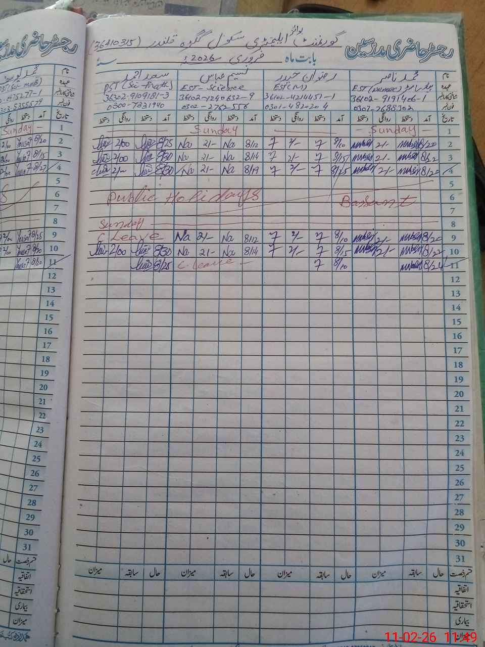 | 36**** | Na**** Ab**** | EST Science | Regular | 0 | 0 | 0 | 0 | 0 | 0 | 0 | 0 | 0 | Casual |